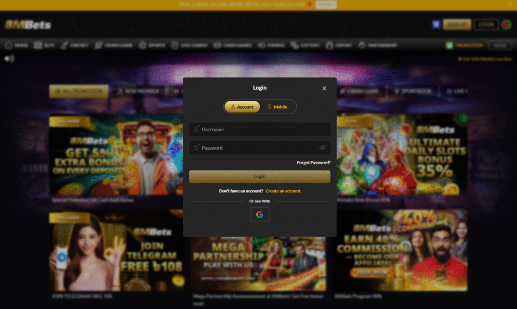 Visit the 8mbets homepage, click the Login button in the top-right corner, enter your registered email or username along with your password, and hit Sign In. If two-factor authentication is active, approve the secondary prompt to complete the process.